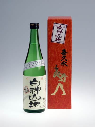 | ブナの原生林の葉土で保水された当町特産「白神山水」を仕込みに使い、太平山伝統の生もと造りで醸した純米酒。「杜氏 藤田喜代美」入魂の一作。 |